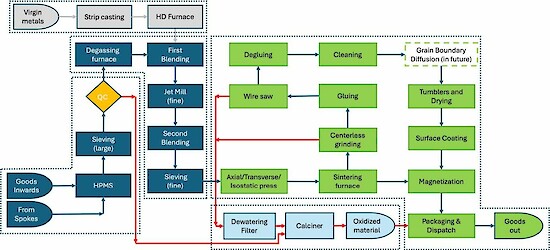 Figure 1: A simple Block Flow Diagram of the magnet recycling and production operation