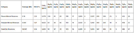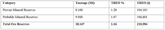 - For the purposes of assessing reasonable prospects for economic extraction and cut-off grade, metallurgical recoveries were applied to individual rare earth oxides. The average total rare earth oxide metallurgical recovery is 39.6%.