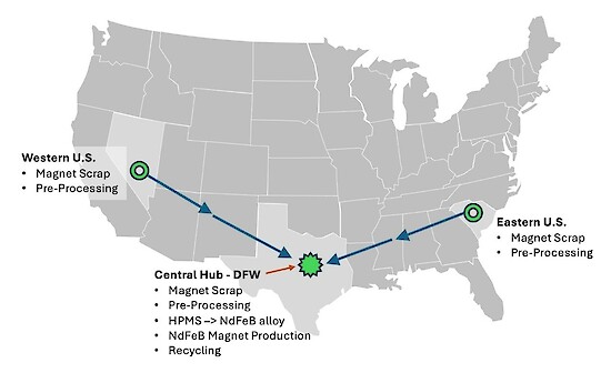 - Positive feasibility study results for rare earth magnet recycling and manufacturing project in Texas, USA announced in November 2024