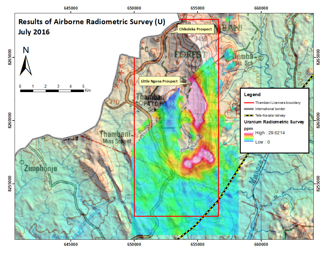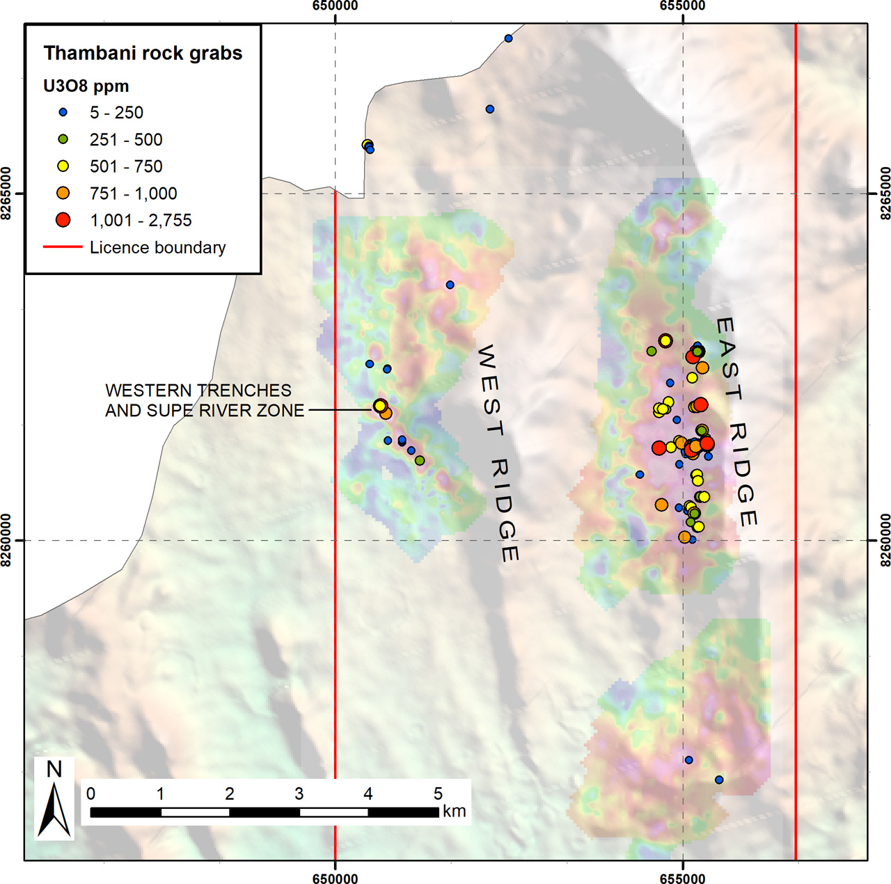 The Thambani area was one of six key areas subject to subsequent geological ground investigations and considered to have potential for economic uranium mineralisation.