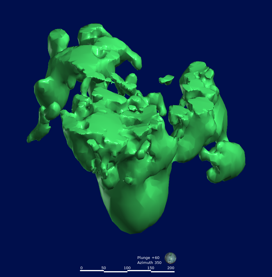 The geological model constructed from the geochemistry provides a good framework within which to interpret the geology of the deposit. The model provides an estimate of the shape and extent of the carbonatite at depth and is considered a useful tool to describe the shape of the main ore body.
