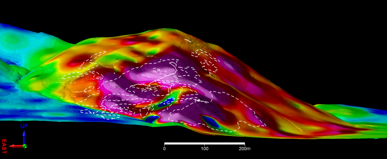 Approximately 95% of the Measured and Indicated Mineral Resource Blocks are at a depth of less than 160 m below the surface of the hill, indicating that the majority will be accessible by open pit mining.